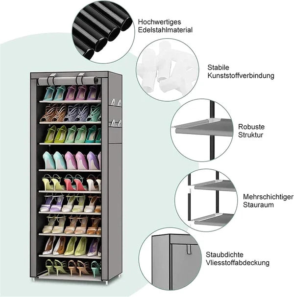 Uz naš praktičan i moderan stalak za cipele, vaš dom će konačno izgledati uredno i organizovano. Ovaj sklopivi cipelarnik štedi prostor, čuva do 18 pari obuće i dolazi sa zaštitnim pokrivačem na rajsferšlusom koji sprečava da se obuća praši i prlja.