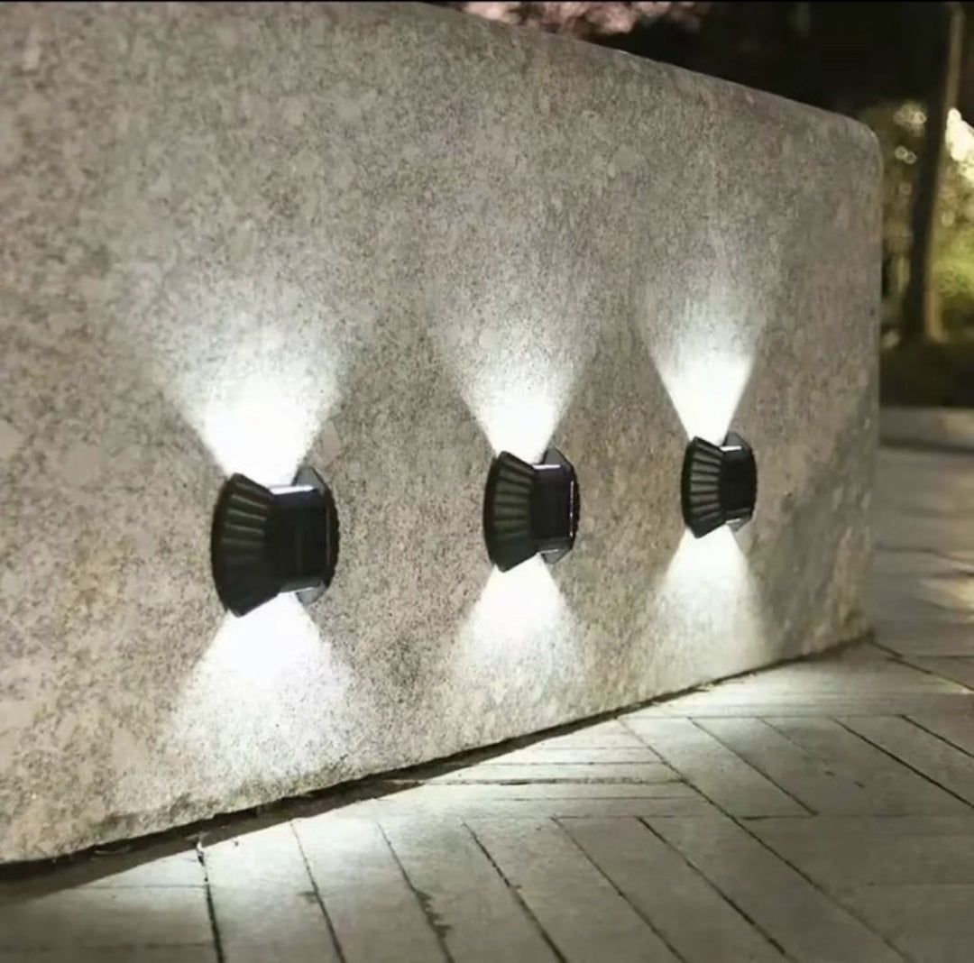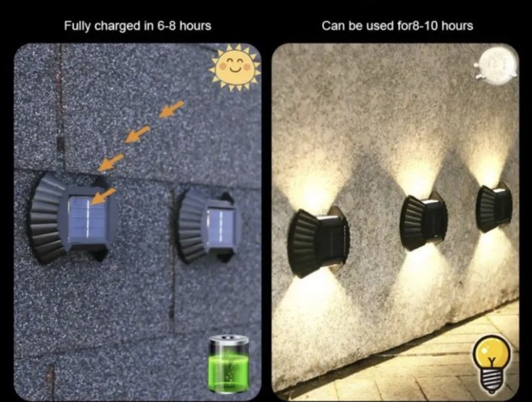 Zidne Lampe Solarne 4 Komada – Pustite sunce da obavi posao! Ove lampe koriste napredne kristalne solarne panele za punjenje tokom dana, pružajući sjajno osvetljenje noću.